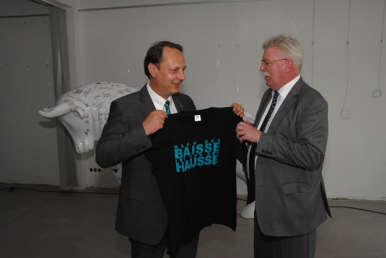 Die Börsenglocke zu läuten ist etwas ganz besonders. Als das Anlagevolumen im BCDI®-Zertifikat 2015 die Grenze von 100 Millionen Euro überschritten hatte, durfte Thomas Müller die Börsenglocke der Börse Stuttgart läuten. Zum Start des boerse.de-Aktienfonds hatte Thomas Müller 2016 zum zweiten Mal die Ehre und nach Erreichen des Fondsvolumens von 100 Millionen Euro im Jahr 2017 sogar zum dritten Mal! Danach hat Thomas Müller seinen Rücktritt erklärt, und heute steht die Börsenglocke im Börsenmuseum.