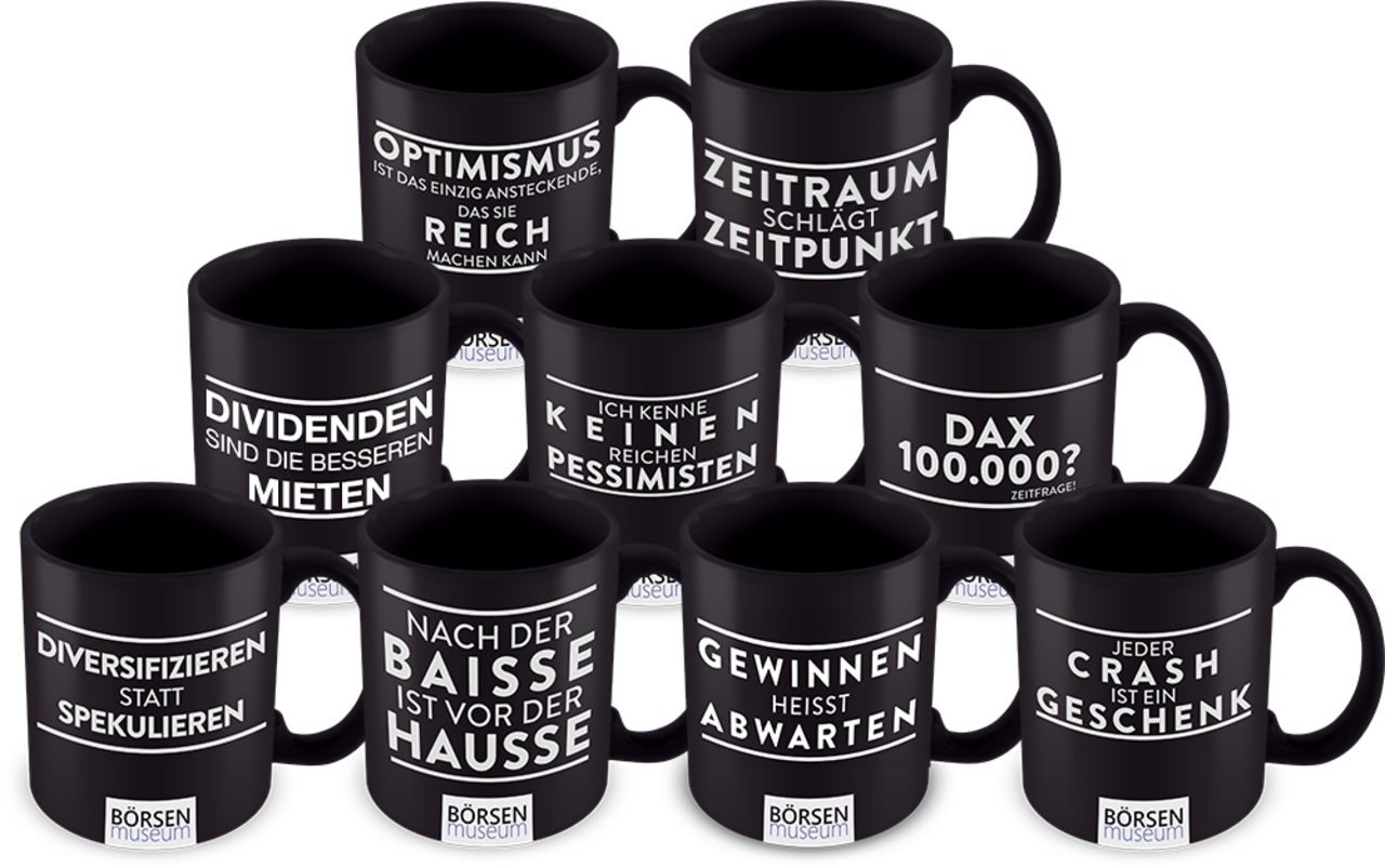 Das Lebensmotto von Thomas Müller heißt „Nach der Baisse ist vor der Hausse“, und so war es nur naheliegend, ein T-Shirt mit diesem Slogan dem damaligen Bayerischen Wirtschaftsminister Manfred Zeil zu überreichen, als dieser den Börsenverlag nach der Flut-Katastrophe 2013 besuchte. „Zeitraum schlägt Zeitpunkt“ und „Ich kenne keinen reichen Pessimisten“ sind genauso eingängige Börsenphilosophien von Thomas Müller, die sogar auf Kaffeetassen erhältlich sind.